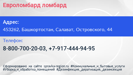 Евроломбард, ломбард по адресу 453262, Башкортостан, Салават, Островского, 44 в дальнейшем Организация, размещена в следующих категориях: