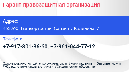 Гарант, правозащитная организация по адресу 453260, Башкортостан, Салават, Калинина, 7 в дальнейшем Организация, размещена в следующих категориях: