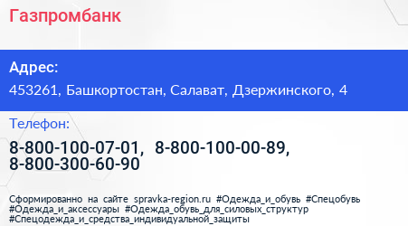 Газпромбанк по адресу 453261, Башкортостан, Салават, Дзержинского, 4 в дальнейшем Организация, размещена в следующих категориях: