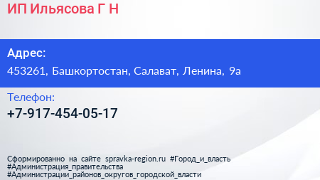ИП Ильясова Г.Н. по адресу 453261, Башкортостан, Салават, Ленина, 9а в дальнейшем Организация, размещена в следующих категориях: