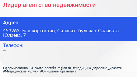Лидер, агентство недвижимости по адресу 453263, Башкортостан, Салават, бульвар Салавата Юлаева, 7 в дальнейшем Организация, размещена в следующих категориях: