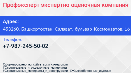 Профэксперт, экспертно-оценочная компания по адресу 453260, Башкортостан, Салават, бульвар Космонавтов, 16 в дальнейшем Организация, размещена в следующих категориях: