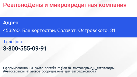 РеальноДеньги, микрокредитная компания по адресу 453260, Башкортостан, Салават, Островского, 31 в дальнейшем Организация, размещена в следующих категориях:
