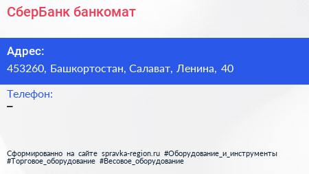 СберБанк, банкомат по адресу 453260, Башкортостан, Салават, Ленина, 40 в дальнейшем Организация, размещена в следующих категориях: