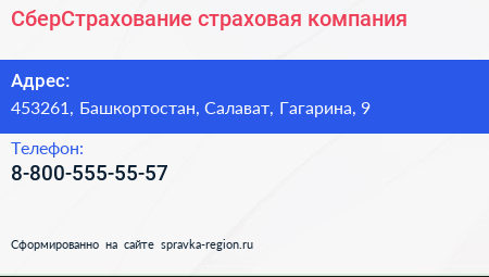 СберСтрахование, страховая компания по адресу 453261, Башкортостан, Салават, Гагарина, 9 в дальнейшем Организация, размещена в следующих категориях: