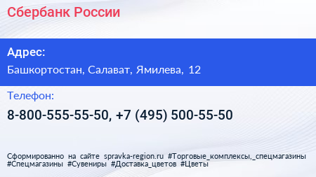 Сбербанк России по адресу Башкортостан, Салават, Ямилева, 12 в дальнейшем Организация, размещена в следующих категориях: