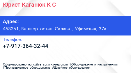 Юрист Каганюк К.С. по адресу 453261, Башкортостан, Салават, Уфимская, 37а в дальнейшем Организация, размещена в следующих категориях:
