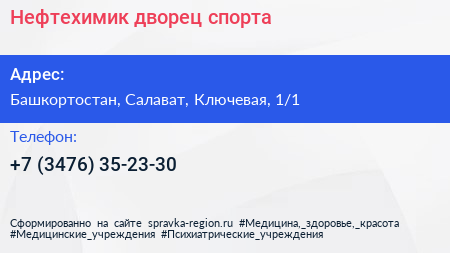 Нефтехимик, дворец спорта по адресу Башкортостан, Салават, Ключевая, 1/1 в дальнейшем Организация, размещена в следующих категориях: