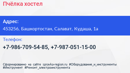 Пчёлка, хостел по адресу 453256, Башкортостан, Салават, Кудаша, 1а в дальнейшем Организация, размещена в следующих категориях: