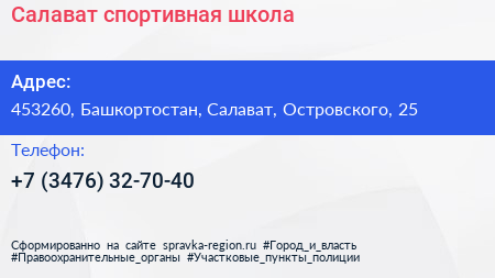 Салават, спортивная школа по адресу 453260, Башкортостан, Салават, Островского, 25 в дальнейшем Организация, размещена в следующих категориях: