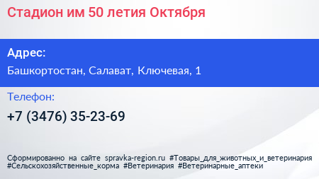 Стадион им. 50-летия Октября по адресу Башкортостан, Салават, Ключевая, 1 в дальнейшем Организация, размещена в следующих категориях: