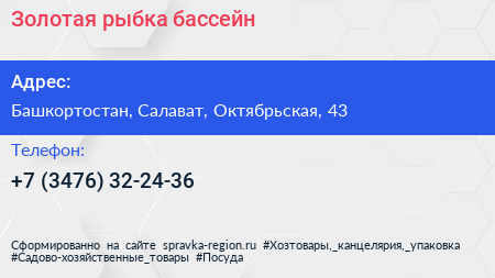 Золотая рыбка, бассейн по адресу Башкортостан, Салават, Октябрьская, 43 в дальнейшем Организация, размещена в следующих категориях: