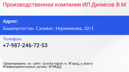 Производственная компания, ИП Денисов В.М. по адресу Башкортостан, Салават, Нуриманова, 32/1 в дальнейшем Организация, размещена в следующих категориях: