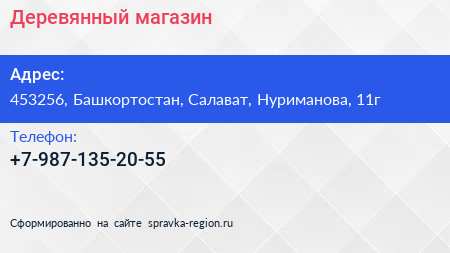 Деревянный, магазин по адресу 453256, Башкортостан, Салават, Нуриманова, 11г в дальнейшем Организация, размещена в следующих категориях: