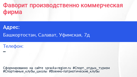 Фаворит, производственно-коммерческая фирма по адресу Башкортостан, Салават, Уфимская, 7д в дальнейшем Организация, размещена в следующих категориях: