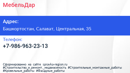 МебельДар по адресу Башкортостан, Салават, Центральная, 35 в дальнейшем Организация, размещена в следующих категориях: