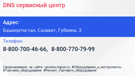 DNS, сервисный центр по адресу Башкортостан, Салават, Губкина, 3 в дальнейшем Организация, размещена в следующих категориях: