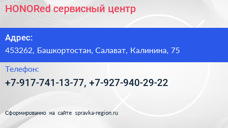 HONORed, сервисный центр по адресу 453262, Башкортостан, Салават, Калинина, 75 в дальнейшем Организация, размещена в следующих категориях: