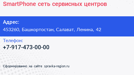 SmartPhone, сеть сервисных центров по адресу 453260, Башкортостан, Салават, Ленина, 42 в дальнейшем Организация, размещена в следующих категориях: