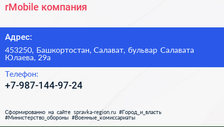 rMobile, компания по адресу 453250, Башкортостан, Салават, бульвар Салавата Юлаева, 29а в дальнейшем Организация, размещена в следующих категориях: