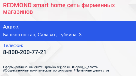 REDMOND smart home, сеть фирменных магазинов по адресу Башкортостан, Салават, Губкина, 3 в дальнейшем Организация, размещена в следующих категориях: