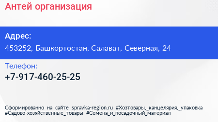 Антей, организация по адресу 453252, Башкортостан, Салават, Северная, 24 в дальнейшем Организация, размещена в следующих категориях: