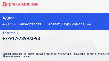 Дарм, компания по адресу 453256, Башкортостан, Салават, Нуриманова, 24 в дальнейшем Организация, размещена в следующих категориях: