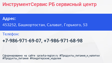 ИнструментСервис РБ, сервисный центр по адресу 453252, Башкортостан, Салават, Горького, 53 в дальнейшем Организация, размещена в следующих категориях: