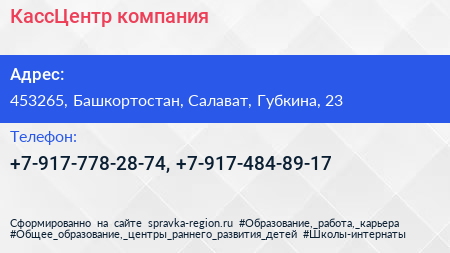 КассЦентр, компания по адресу 453265, Башкортостан, Салават, Губкина, 23 в дальнейшем Организация, размещена в следующих категориях: