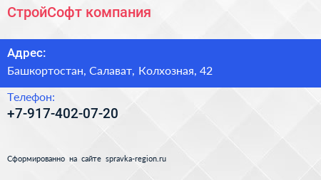 СтройСофт, компания по адресу Башкортостан, Салават, Колхозная, 42 в дальнейшем Организация, размещена в следующих категориях: