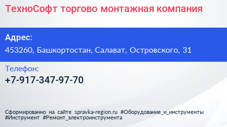 ТехноСофт, торгово-монтажная компания по адресу 453260, Башкортостан, Салават, Островского, 31 в дальнейшем Организация, размещена в следующих категориях: