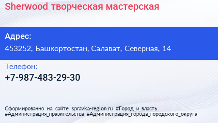 Sherwood, творческая мастерская по адресу 453252, Башкортостан, Салават, Северная, 14 в дальнейшем Организация, размещена в следующих категориях: