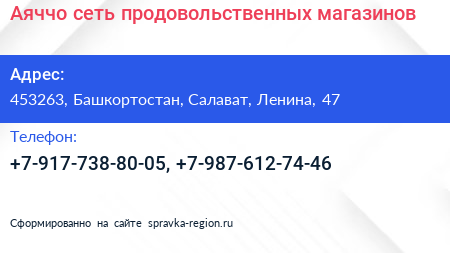 Аяччо, сеть продовольственных магазинов по адресу 453263, Башкортостан, Салават, Ленина, 47 в дальнейшем Организация, размещена в следующих категориях: