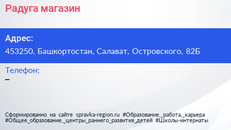 Радуга, магазин по адресу 453250, Башкортостан, Салават, Островского, 82Б в дальнейшем Организация, размещена в следующих категориях: