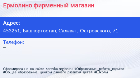 Ермолино, фирменный магазин по адресу 453251, Башкортостан, Салават, Островского, 71 в дальнейшем Организация, размещена в следующих категориях: