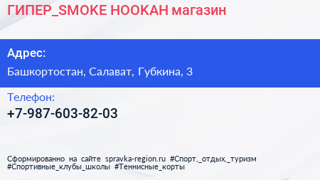 ГИПЕР_SMOKE HOOKAH, магазин по адресу Башкортостан, Салават, Губкина, 3 в дальнейшем Организация, размещена в следующих категориях: