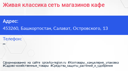 Живая классика, сеть магазинов-кафе по адресу 453260, Башкортостан, Салават, Островского, 13 в дальнейшем Организация, размещена в следующих категориях: