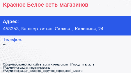 Красное & Белое, сеть магазинов по адресу 453263, Башкортостан, Салават, Калинина, 24 в дальнейшем Организация, размещена в следующих категориях: