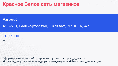 Красное & Белое, сеть магазинов по адресу 453263, Башкортостан, Салават, Ленина, 47 в дальнейшем Организация, размещена в следующих категориях: