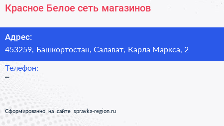 Красное & Белое, сеть магазинов по адресу 453259, Башкортостан, Салават, Карла Маркса, 2 в дальнейшем Организация, размещена в следующих категориях: