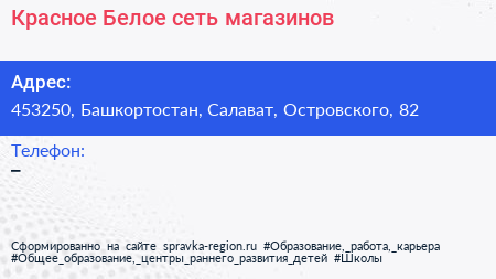 Красное & Белое, сеть магазинов по адресу 453250, Башкортостан, Салават, Островского, 82 в дальнейшем Организация, размещена в следующих категориях: