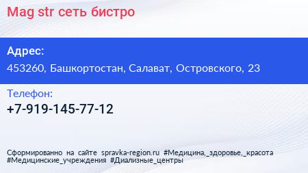 Mag`str, сеть бистро по адресу 453260, Башкортостан, Салават, Островского, 23 в дальнейшем Организация, размещена в следующих категориях: