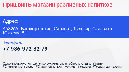 ПришвинЪ, магазин разливных напитков по адресу 453265, Башкортостан, Салават, бульвар Салавата Юлаева, 51 в дальнейшем Организация, размещена в следующих категориях: