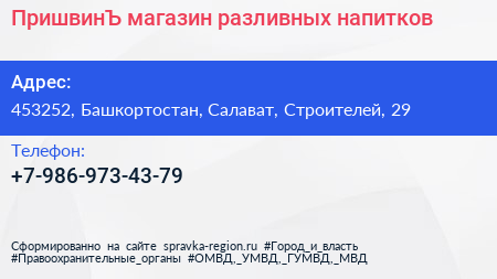 ПришвинЪ, магазин разливных напитков по адресу 453252, Башкортостан, Салават, Строителей, 29 в дальнейшем Организация, размещена в следующих категориях: