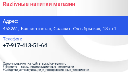 Razlivные нaпитки, магазин по адресу 453261, Башкортостан, Салават, Октябрьская, 13 ст1 в дальнейшем Организация, размещена в следующих категориях: