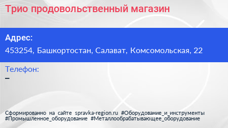 Трио, продовольственный магазин по адресу 453254, Башкортостан, Салават, Комсомольская, 22 в дальнейшем Организация, размещена в следующих категориях: