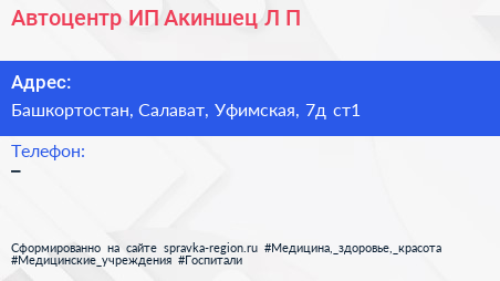 Автоцентр, ИП Акиншец Л.П. по адресу Башкортостан, Салават, Уфимская, 7д ст1 в дальнейшем Организация, размещена в следующих категориях: