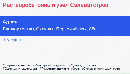 Растворобетонный узел Салаватстрой по адресу Башкортостан, Салават, Первомайская, 85в в дальнейшем Организация, размещена в следующих категориях: