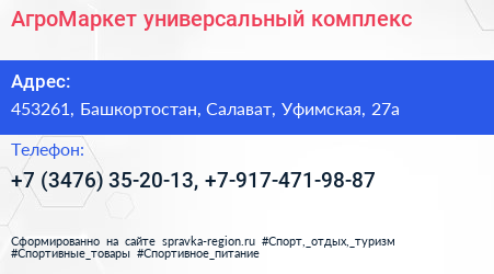 АгроМаркет, универсальный комплекс по адресу 453261, Башкортостан, Салават, Уфимская, 27а в дальнейшем Организация, размещена в следующих категориях: