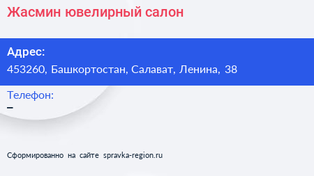 Жасмин, ювелирный салон по адресу 453260, Башкортостан, Салават, Ленина, 38 в дальнейшем Организация, размещена в следующих категориях: